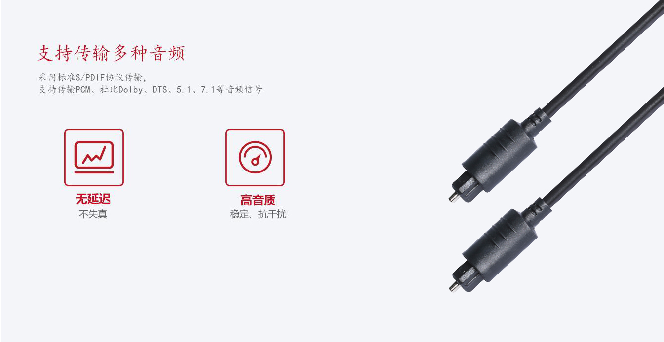 ● 1.傳輸效率高,以光脈沖的形式來傳輸數字信號,給您帶來不一樣的聽覺體驗;