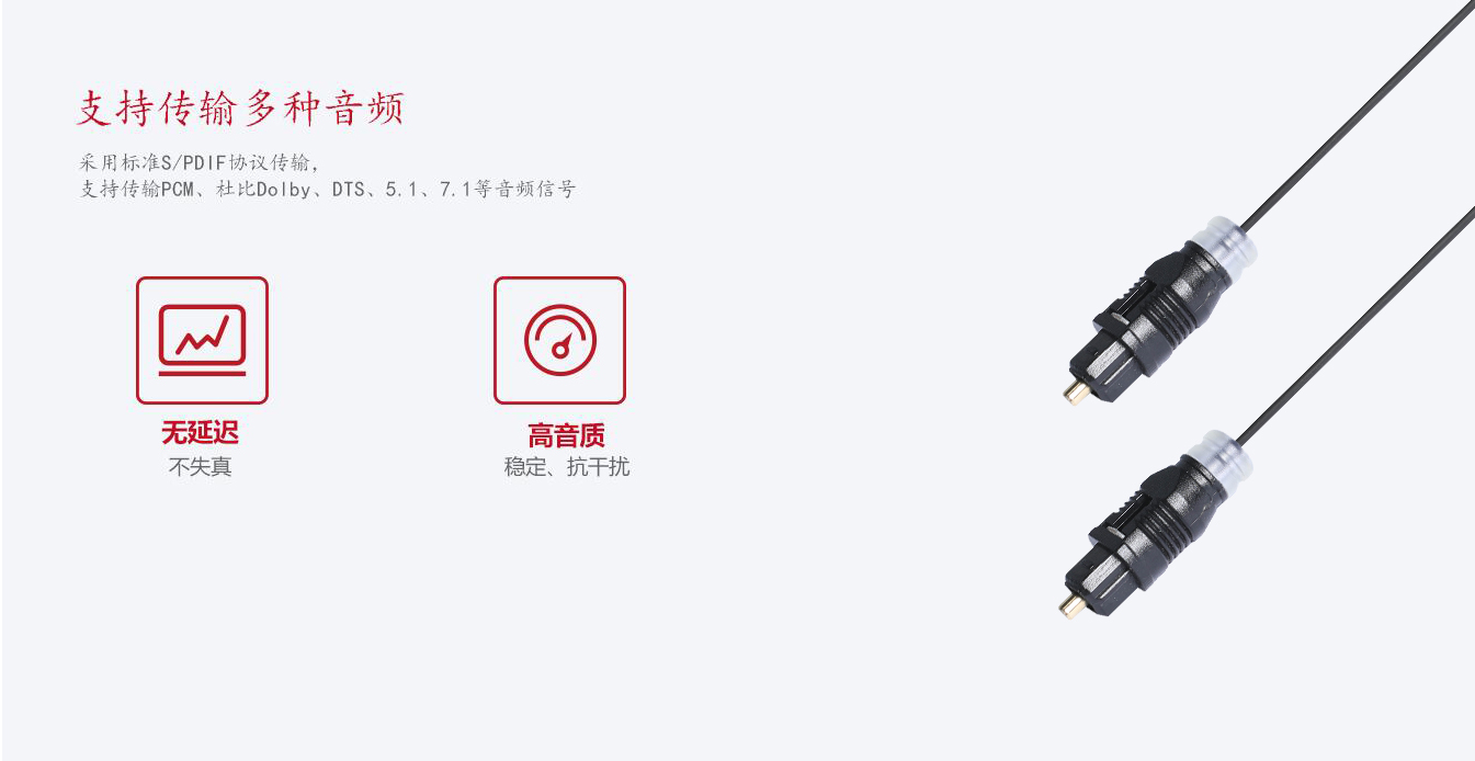 ● 1.傳輸效率高,以光脈沖的形式來傳輸數字信號,給您帶來不一樣的聽覺體驗;