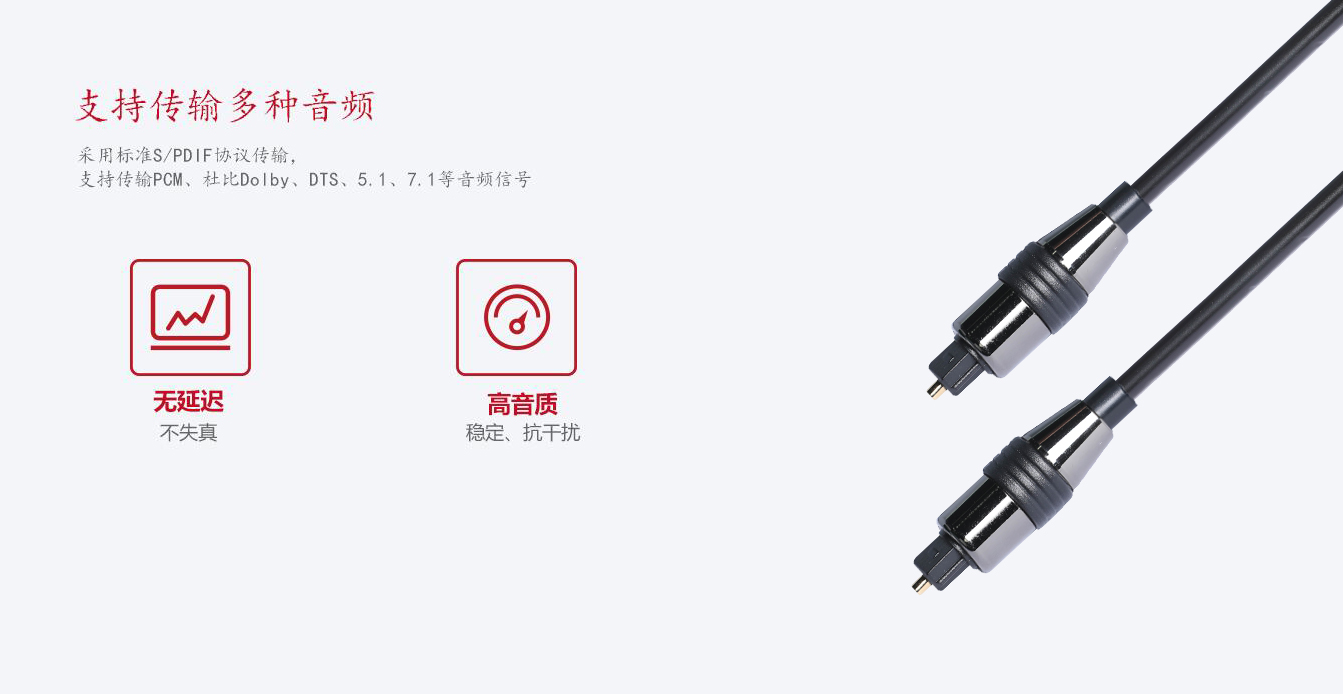 ● 1.傳輸效率高,以光脈沖的形式來傳輸數字信號,給您帶來不一樣的聽覺體驗;